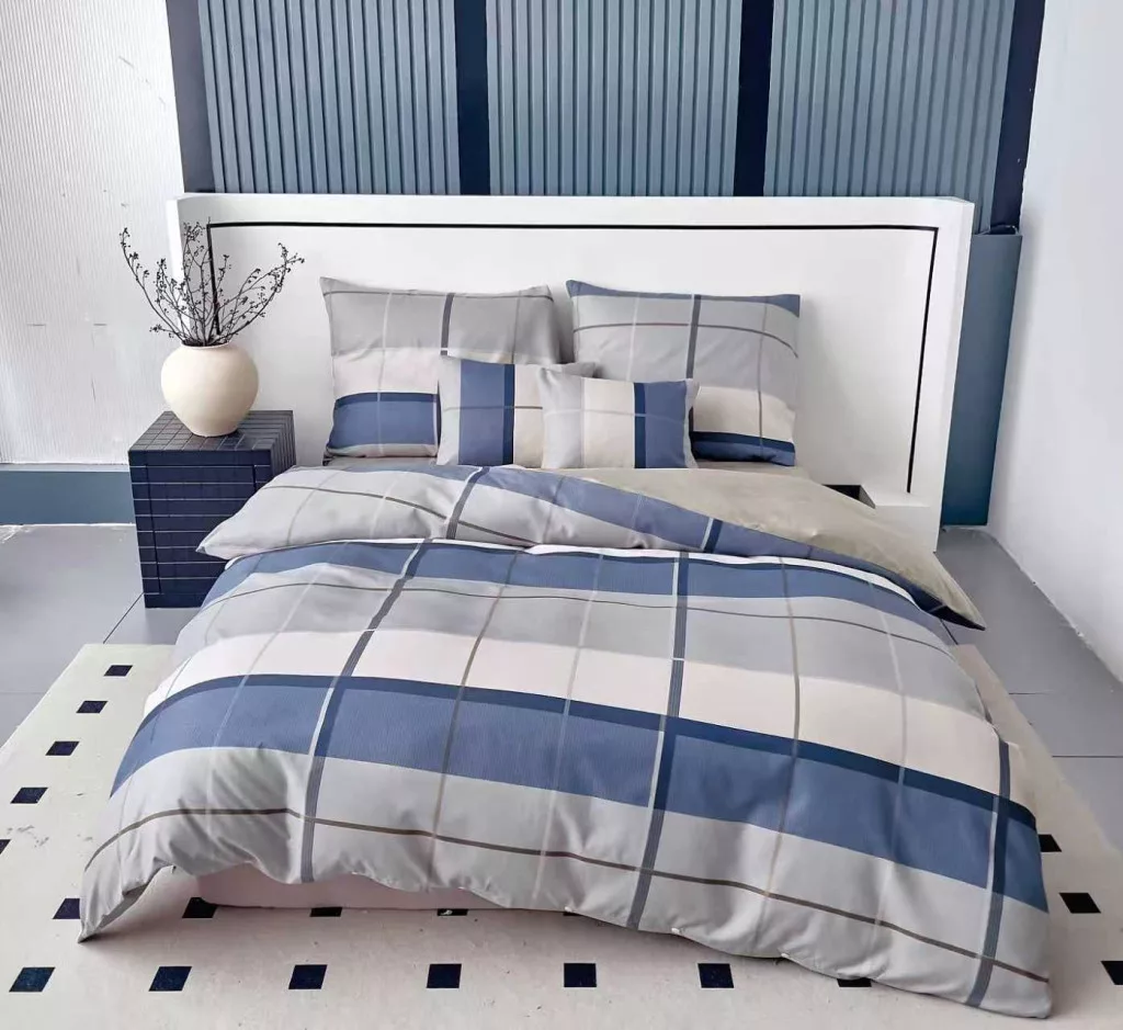 Ágyneműhuzat Odin Flanel szürke kék kockás 7 részes