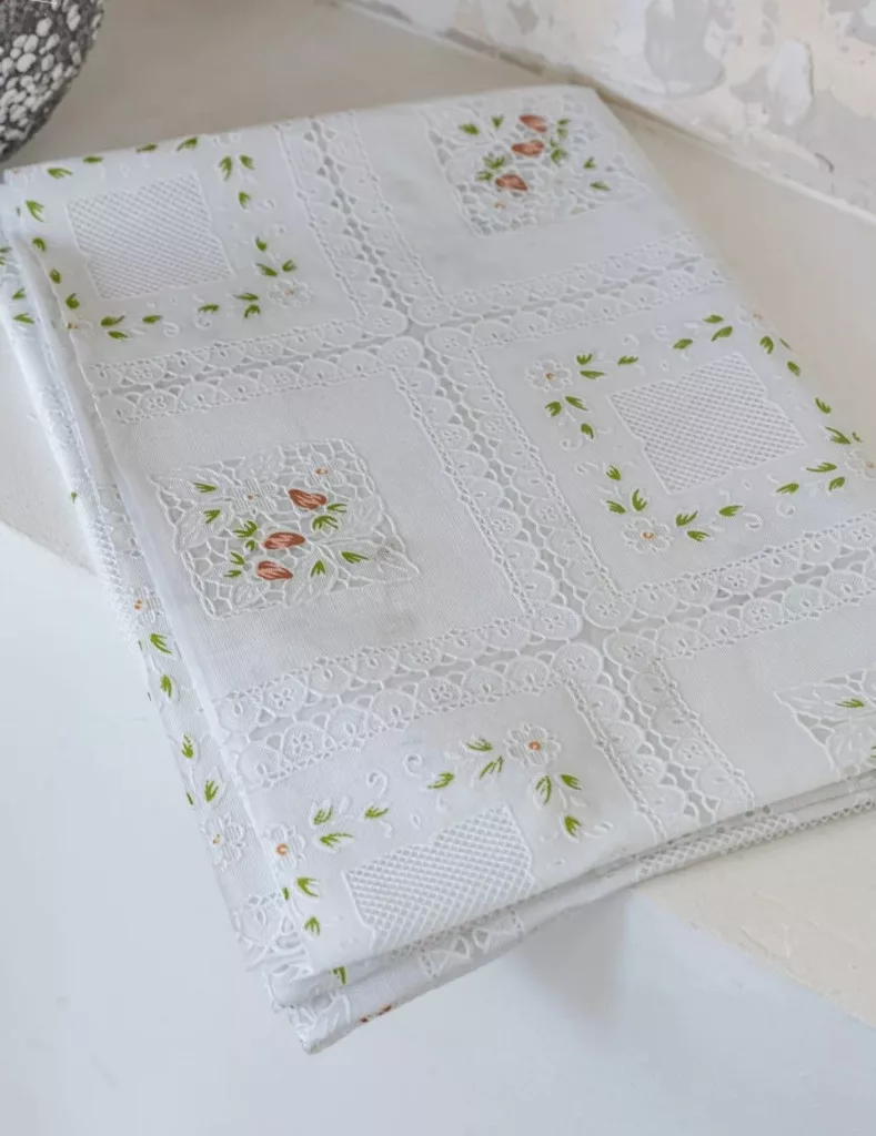 Csipkés viaszos vászon méterben 140cm széles fehér csipkés Szamócás