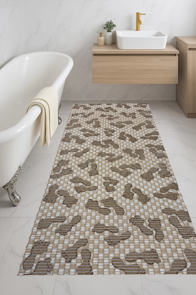 Fürdőszoba szőnyeg PVC Bézs Talpas 65cm széles