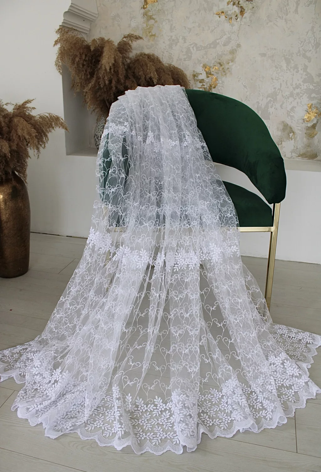 Kész függöny Brillant 326 Fehér Leveles minta 300x160cm