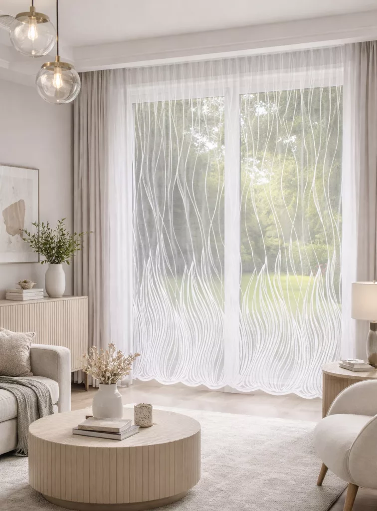 Kész függöny Dalí fehér Modern hullám minta 300x175cm
