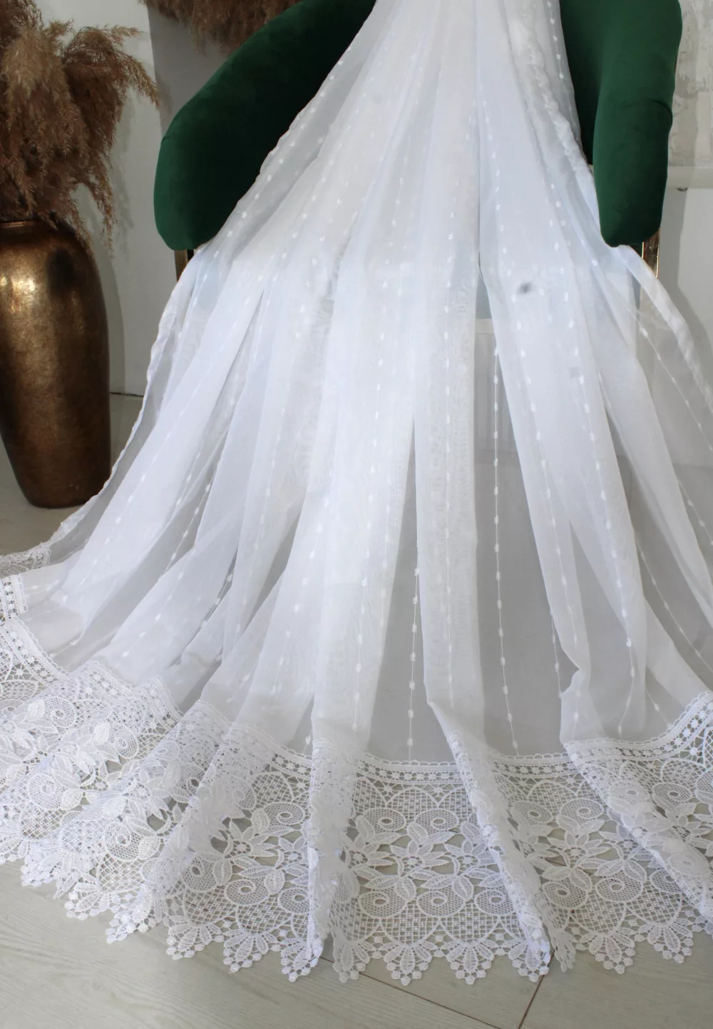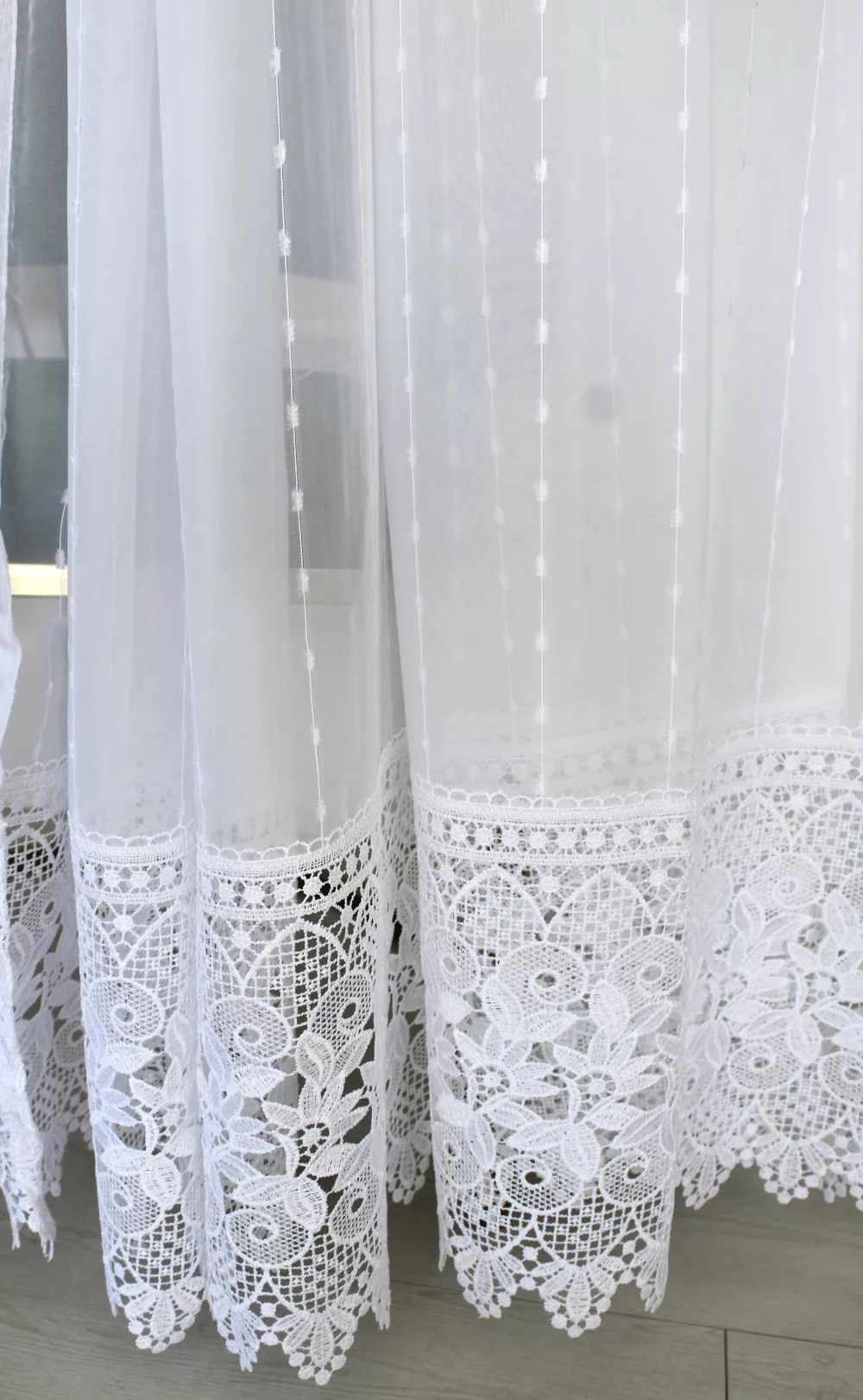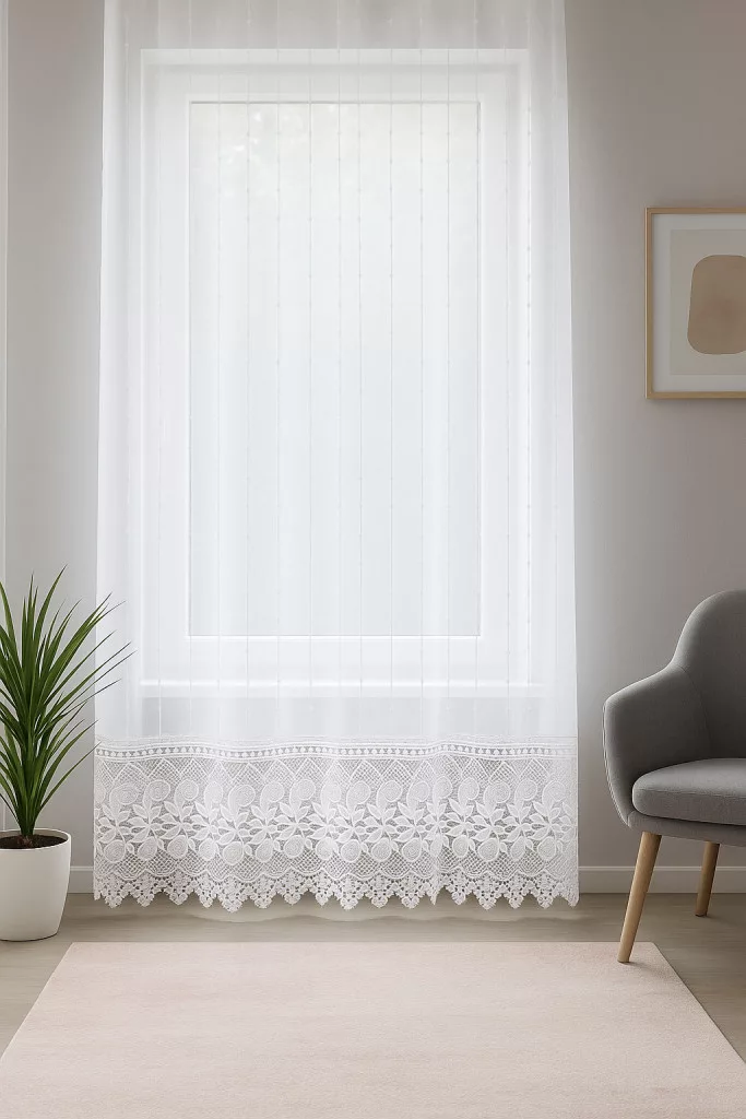 Ez a gyönyörű függöny tökéletes választás kicsiktől a nagyokig bárki számára otthonossá teszi a helységet. A lágy esésű, voile azaz fátyol anyag amellett, hogy kintről befelé véd, tökéletes fényáteresztésével, nem fogszt meg minket a világos, légies megjelenéstől.