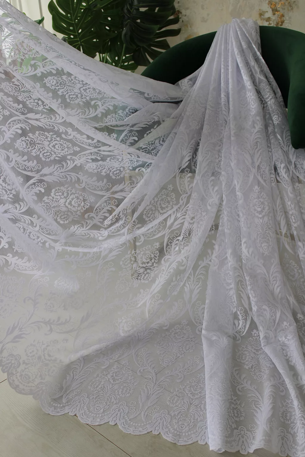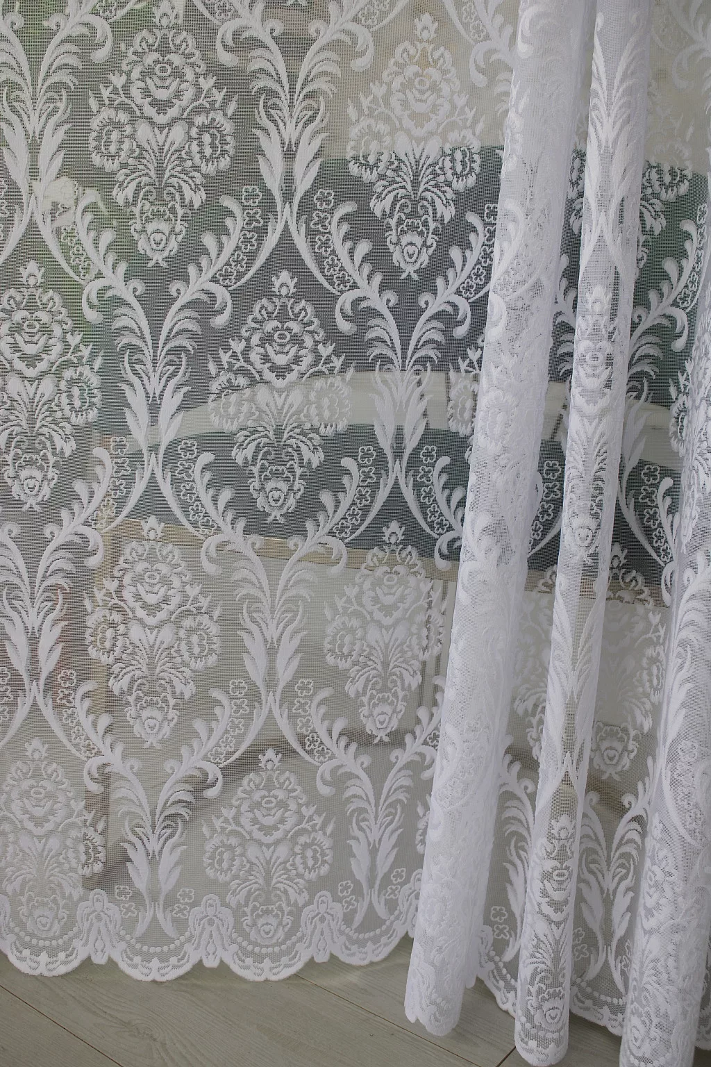 Jacquard fehér virágos mintás függöny -