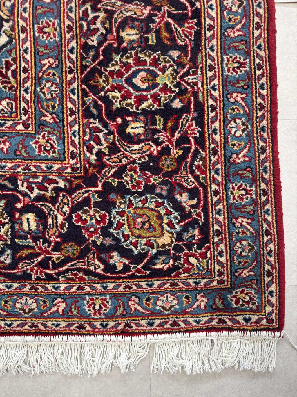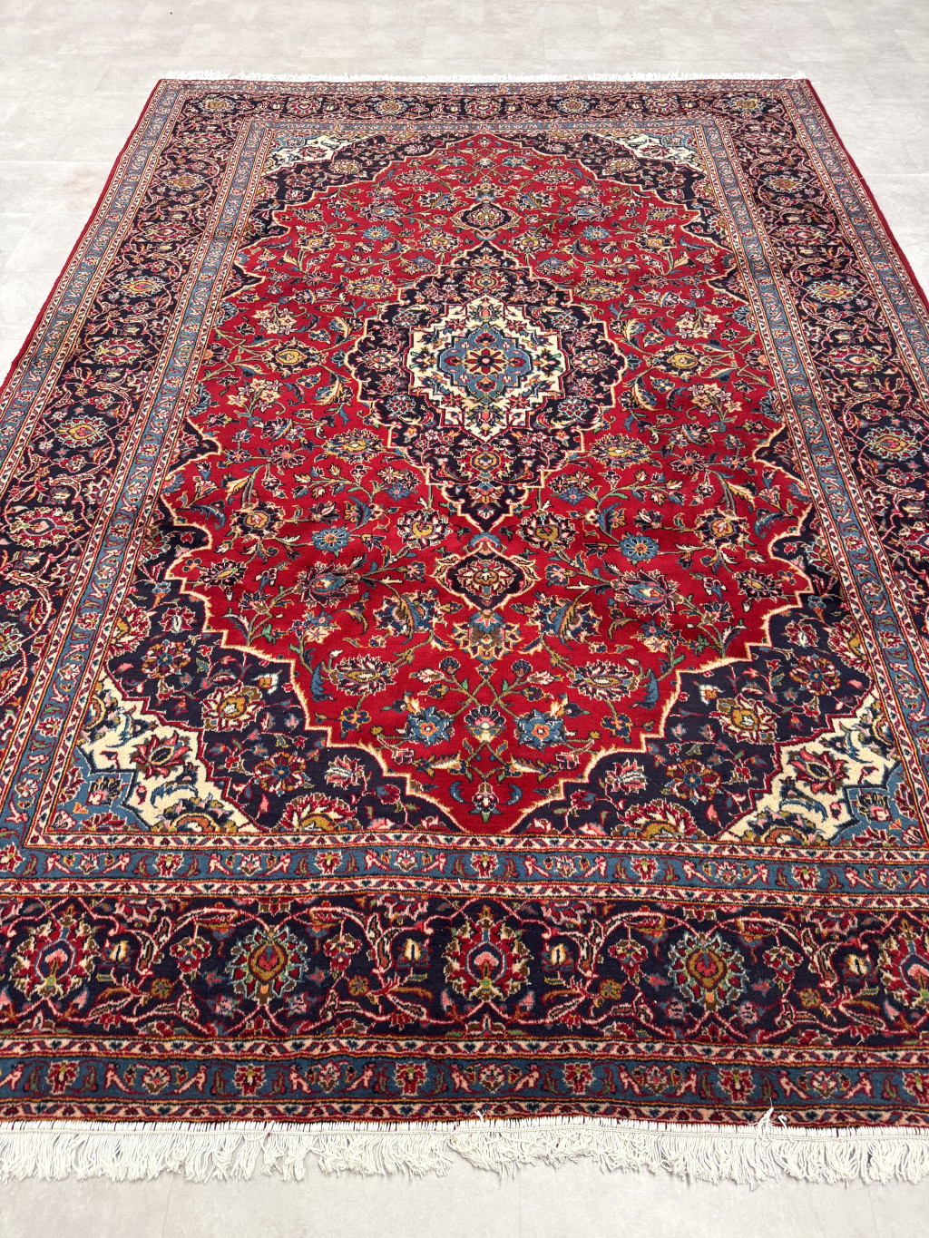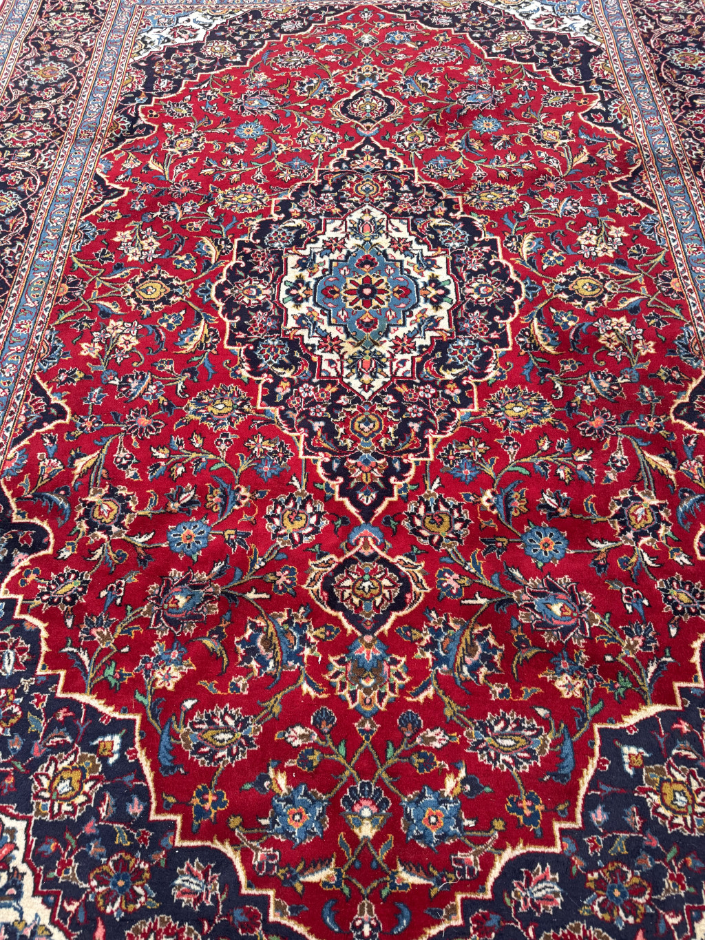 Kézi csomózású perzsa Kashan Bordós Kékes szőnyeg 355x260cm