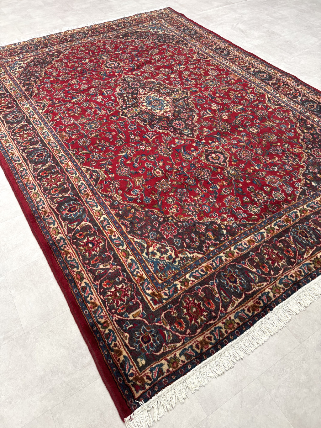 Néhány darabon kisebb kopás vagy apró javítás előfordulhat, amely természetes egy ilyen korú, valódi kézicsomózású szőnyegnél. Ezek a finom részletek csak még karakteresebbé teszik a szőnyegeket, igazi vintage bájt adva nekik.