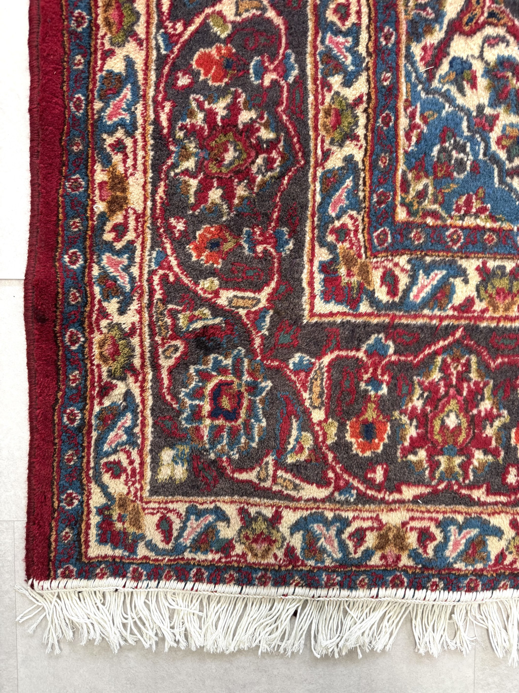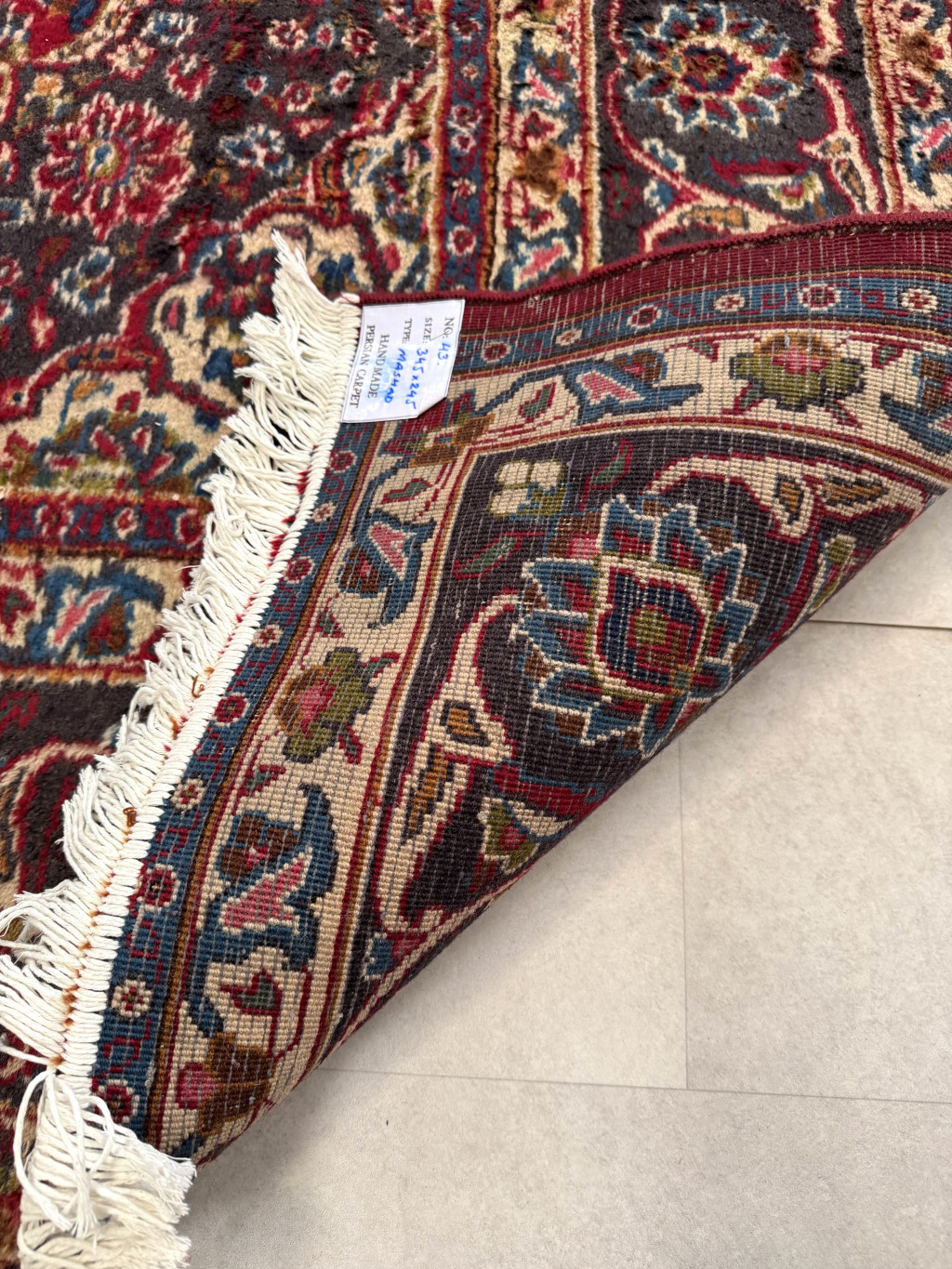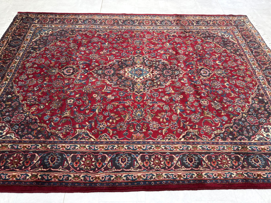 Kézi csomózású perzsa Mashed Bordós Kékes szőnyeg 345x245cm
