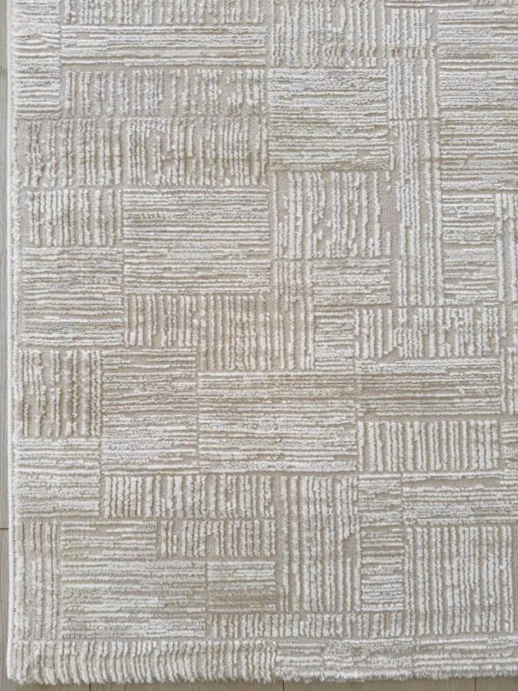 Fedezd fel a Modern Kashmir szőnyeget, amely a letisztultság és a modern stílus tökéletes harmóniáját hozza el otthonodba. Finom bézs-fehér árnyalatával és különleges 3D hatású mintázatával bármely helyiségnek elegáns, mégis meleg hangulatot ad.