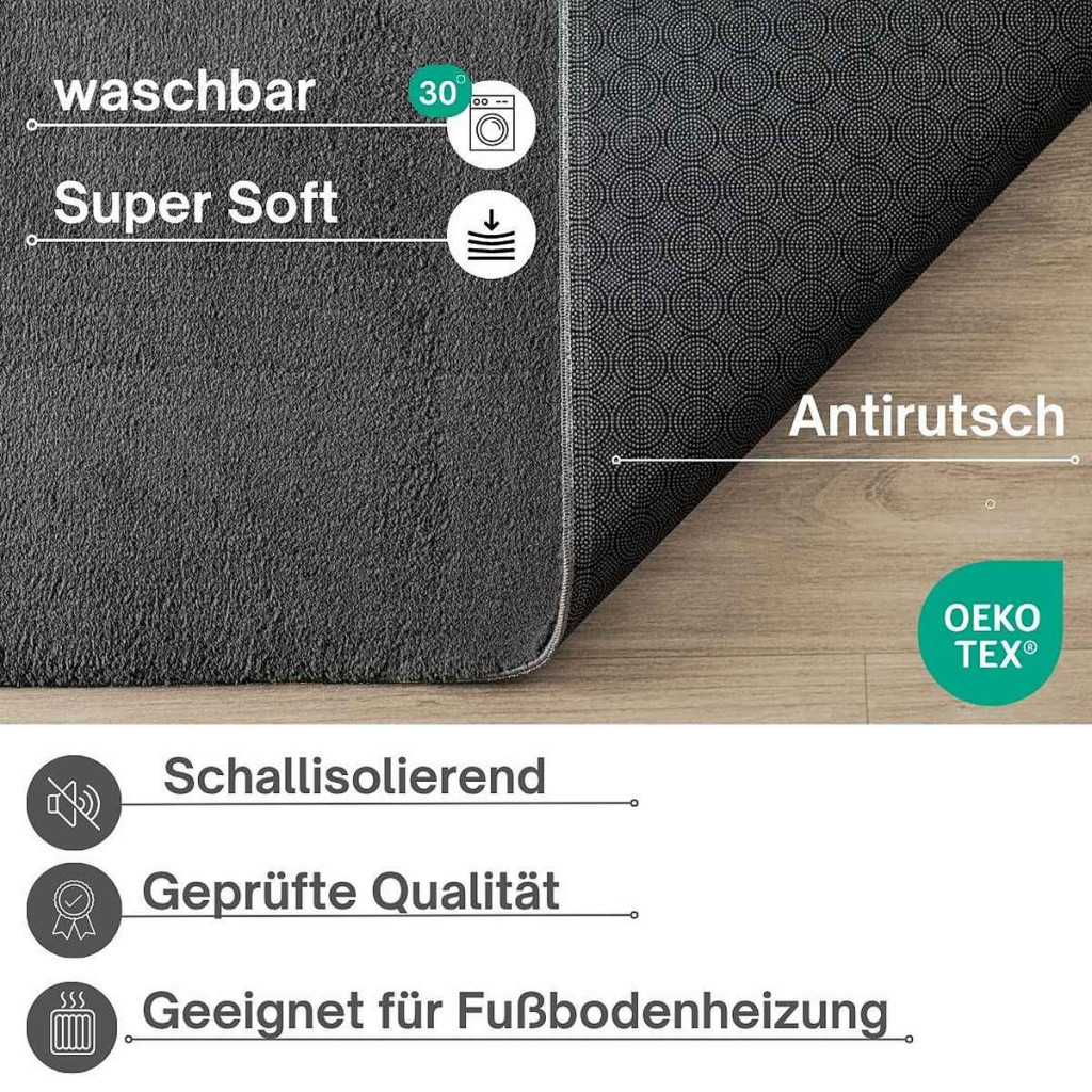 Modern szőnyeg Palm Plüss (Antracit) 240x330cm Sötét Szürke