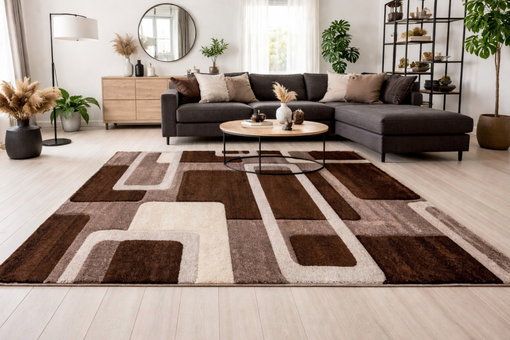 modern barna mintás szőnyeg nappaliba Venice 1201 160x220 cm puha felülettel