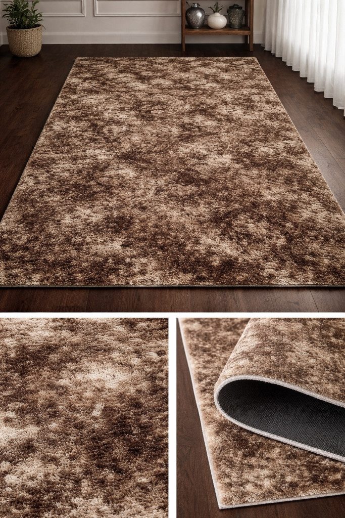 A szőnyeg 100% poliészter anyagból készült, amely tartós, könnyen kezelhető és hosszú távon is megőrzi puhaságát. A kb. 20 mm-es szálhossz igazán vastag, selymes érzetet biztosít, így minden lépés komfortos élményt ad. A termék súlya kb. 1,5 kg/m², ami stabil tartást és prémium minőséget jelent.