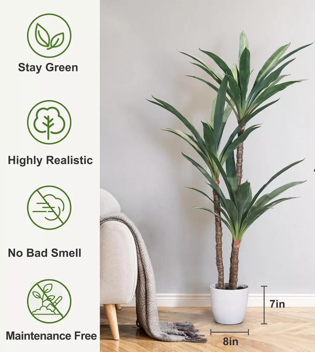 Dobd fel otthonod vagy irodád hangulatát ezzel a prémium minőségű, 3 törzses mű yucca pálmával, amely megtévesztésig hasonlít az igazi növényhez. A részletgazdag levelek, természetes színátmenetek és a valósághű törzs elegáns, modern megjelenést biztosítanak bármilyen enteriőrben.