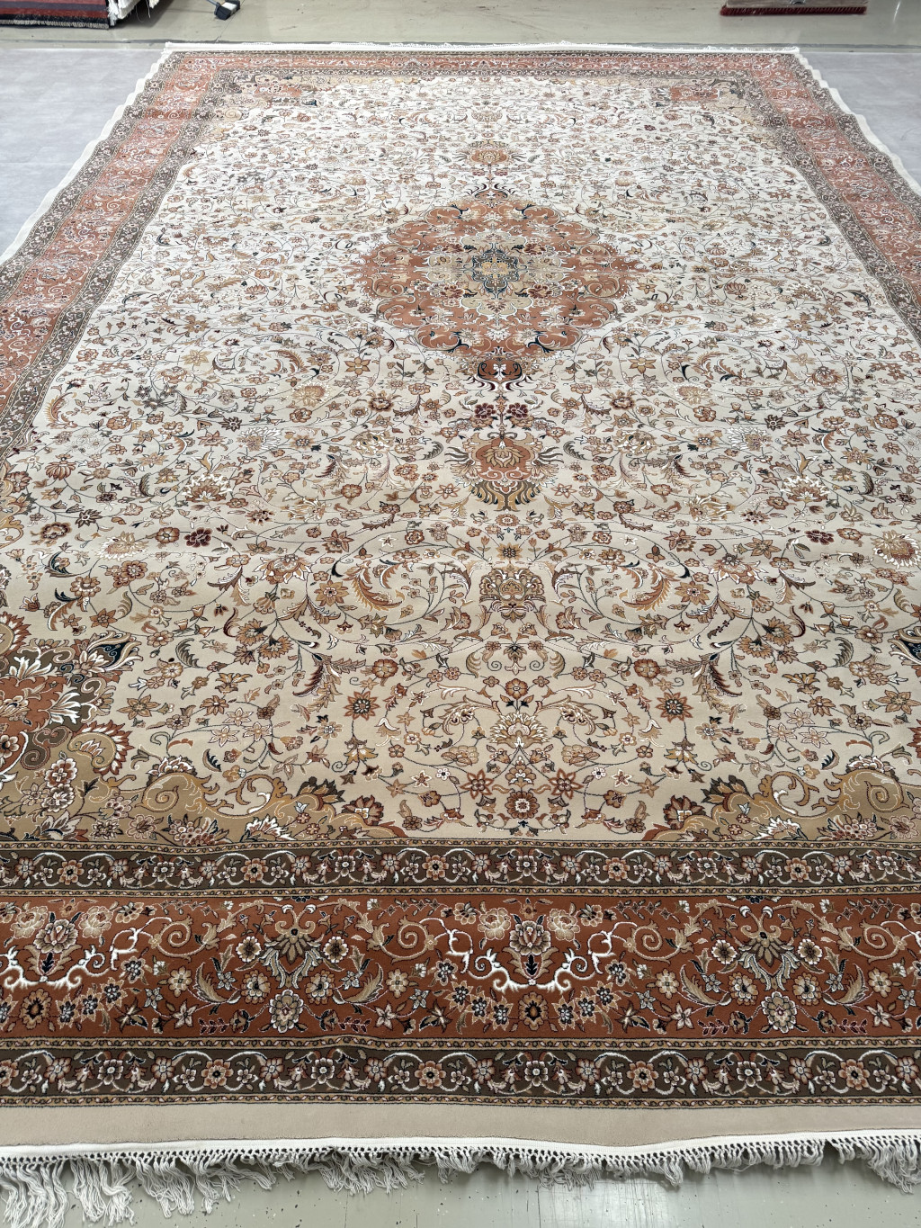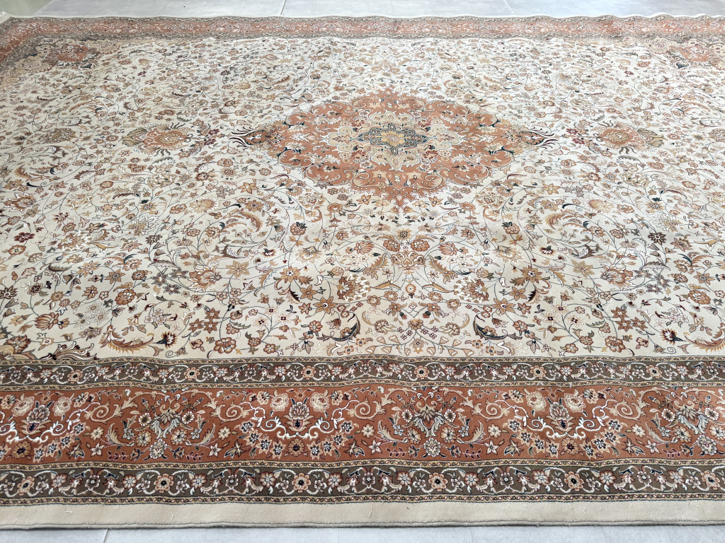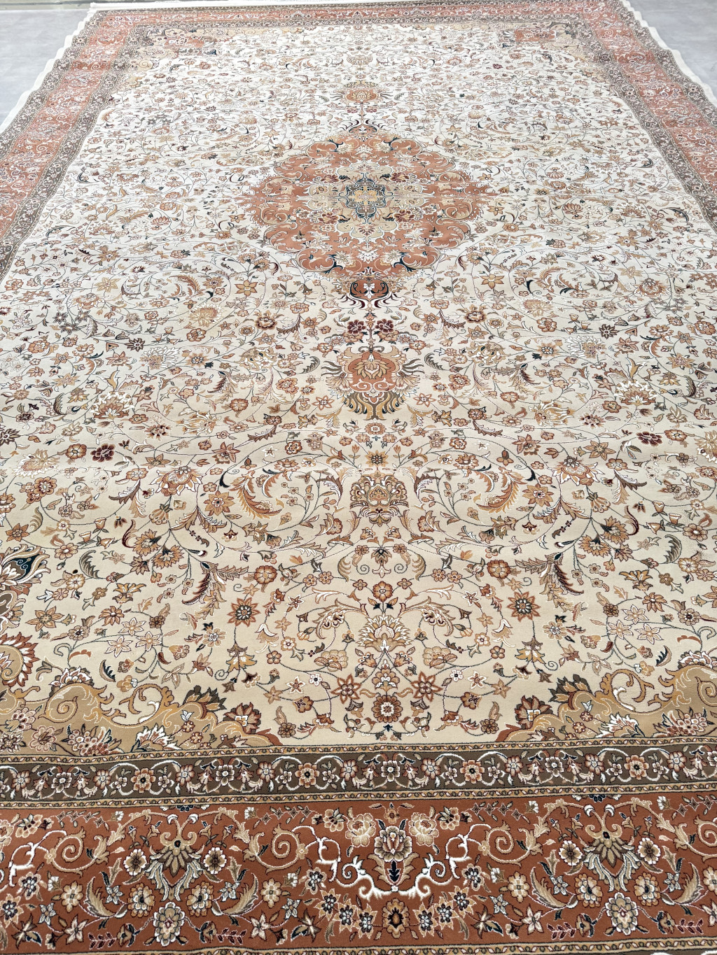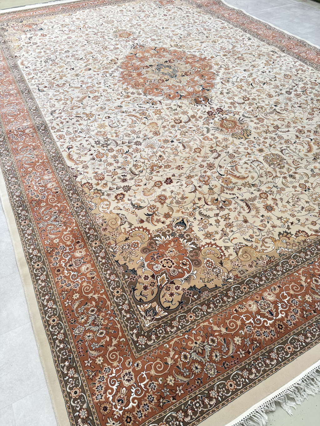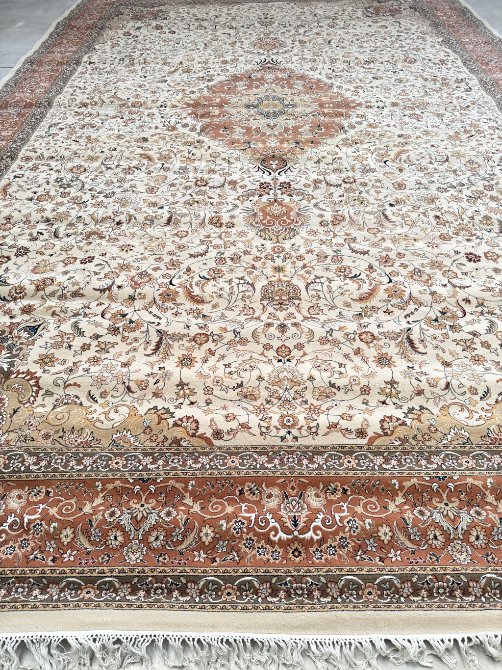 Ritka, óriás méretű (600 × 400 cm – 24 m²) vintage gépi perzsa szőnyeg, klasszikus Tabriz városi mintával, Iránból.