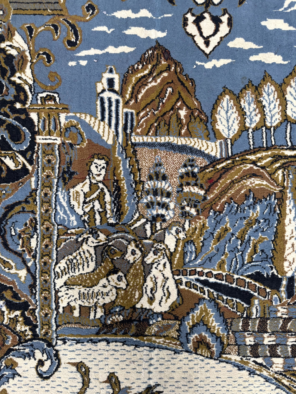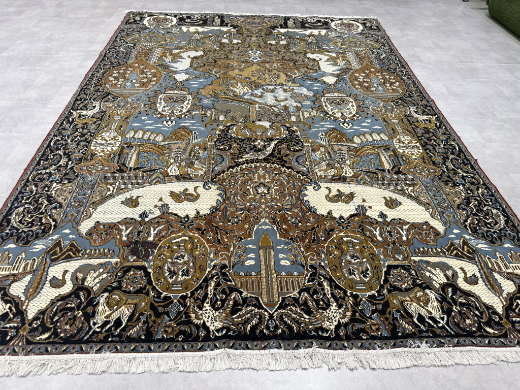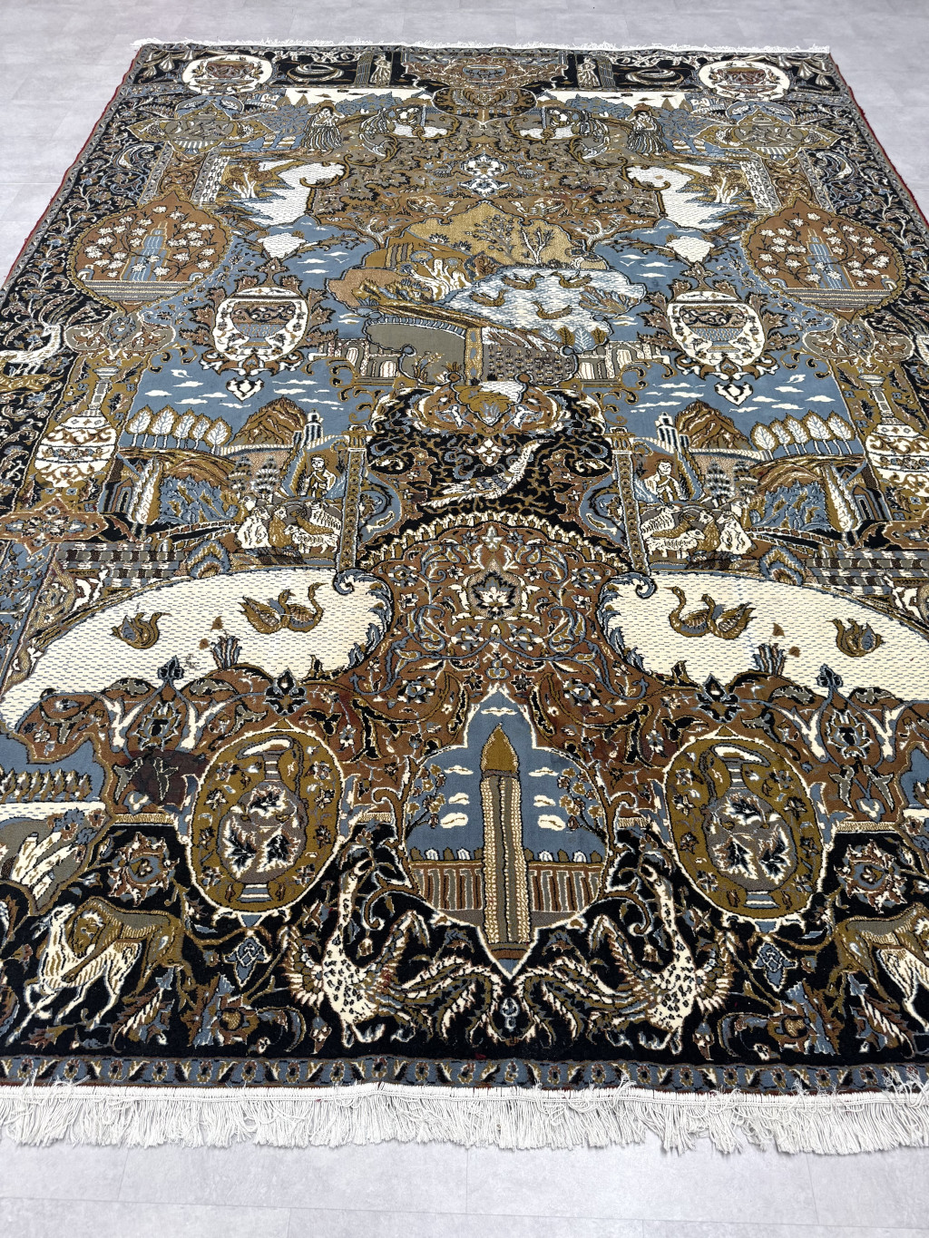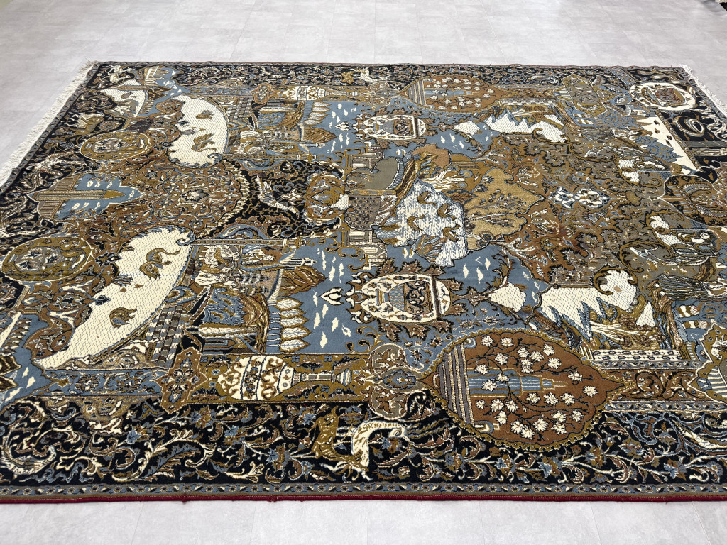 Vintage Perzsa szőnyeg (13) Tabriz vadászos Kék-Barna 300x400cm