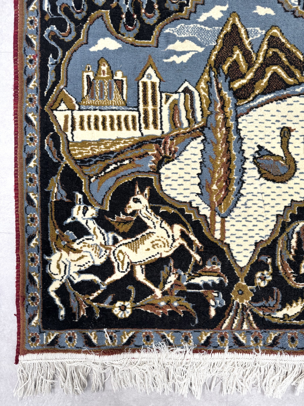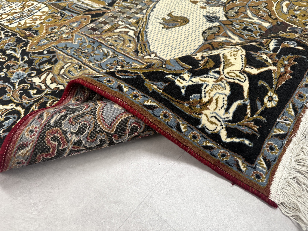 Vintage Perzsa szőnyeg (13) Tabriz vadászos  Kék-Barna 300x400cm