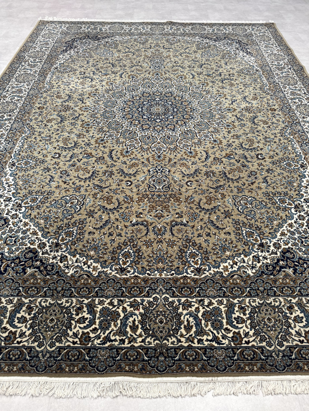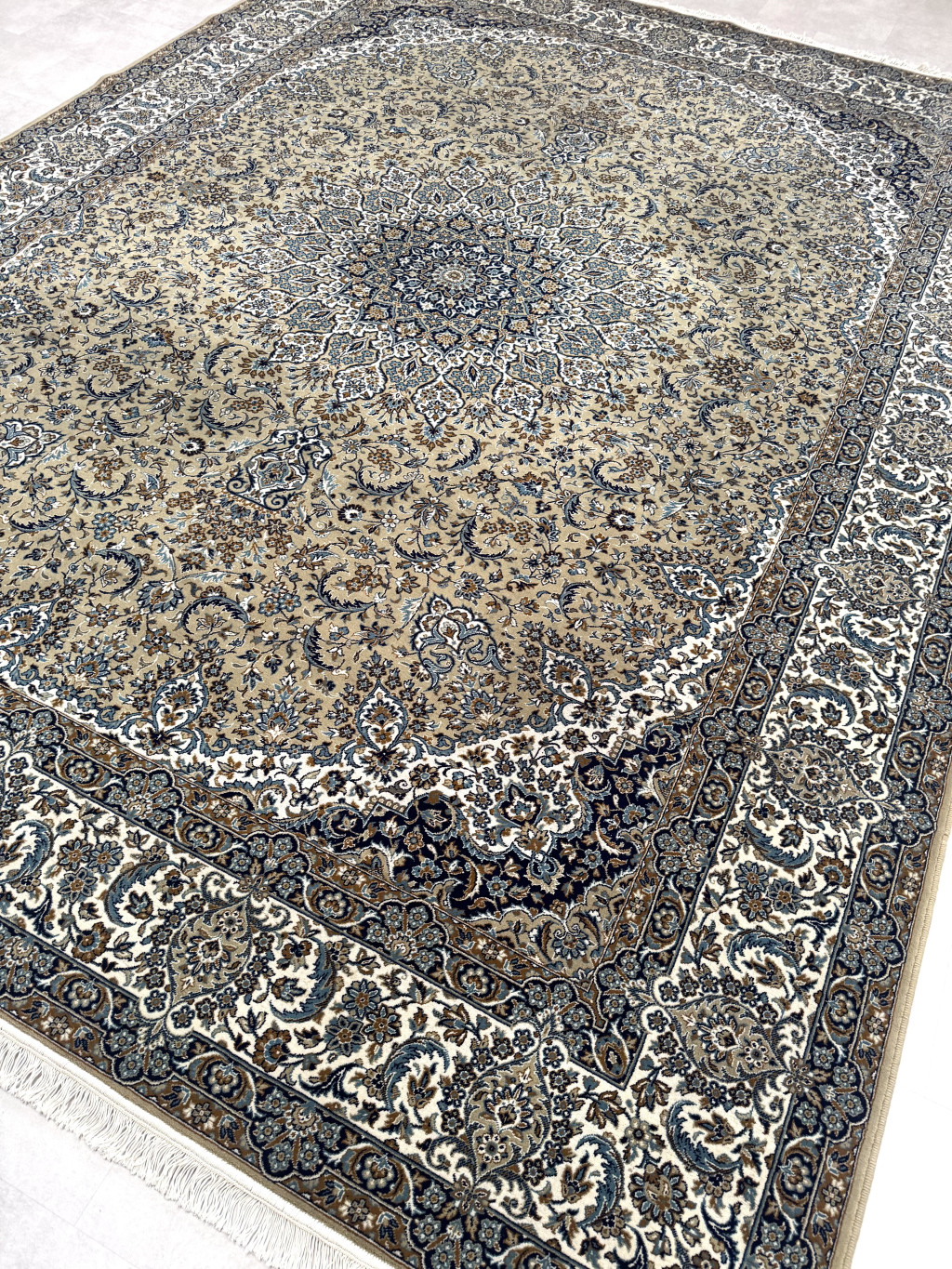 Vintage Perzsa szőnyeg (18-19) Nain Bézs-Kék 300x400cm