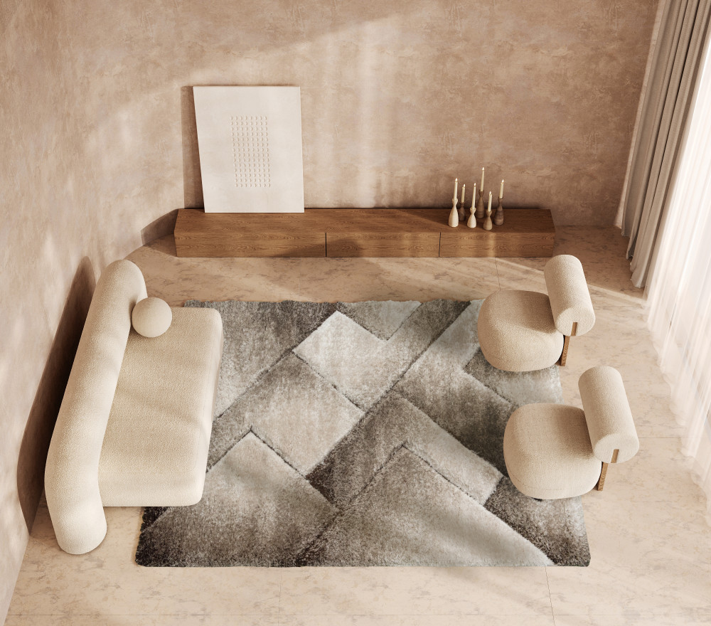 A 3D hatás kiemelkedő dimenziót ad a mintáknak, ezáltal a szőnyeg különleges mélységet és dinamizmust kölcsönöz a térnek.