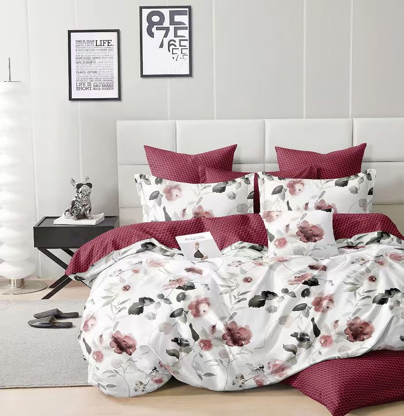 Ágyneműhuzat PUHA Mikro Plüss fehér bordó virágos 7 részes