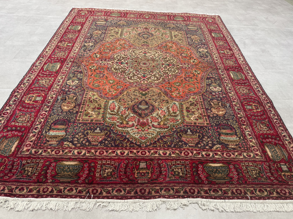 Kézi csomózású perzsa Tabriz Bordós Narancsos szőnyeg 342x254cm